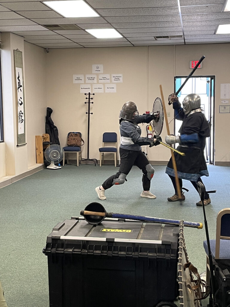 We have a small study group practicing sword and shield in the style of the SCA along with some practicing cut and thrust in the style of HEMA. The meeting times can be found on the Aikido of Northwest Kansas Master Schedule, and you can ask any questions during those practices or by contacting us.